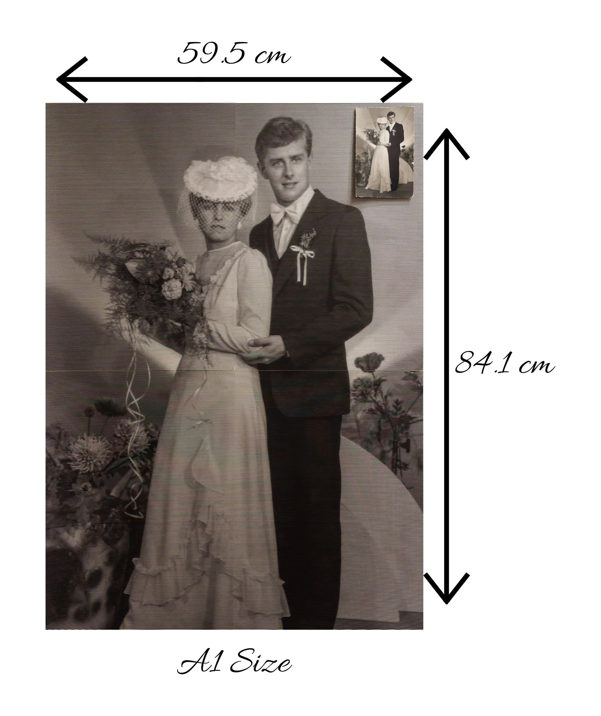 Wedding photo and wedding anniversary photorealistic lino recreation.